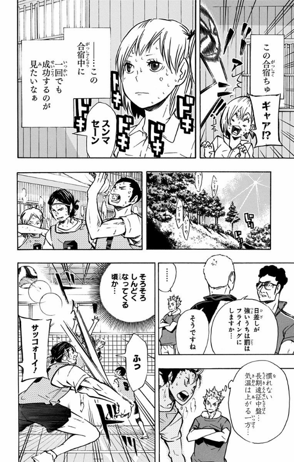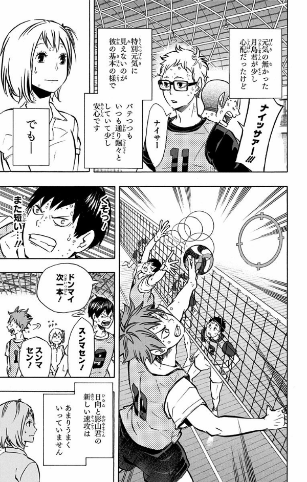 東京遠征中盤、練習の成果が少しずつ表れ始める烏野!! だが影山との新しい速攻が上手くいかず、苛立つ日向…。空中で戦える力を求める日向は、強豪のエース・木兎達の居残り練習に加わり、特訓に励むが!?
