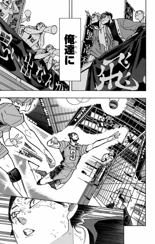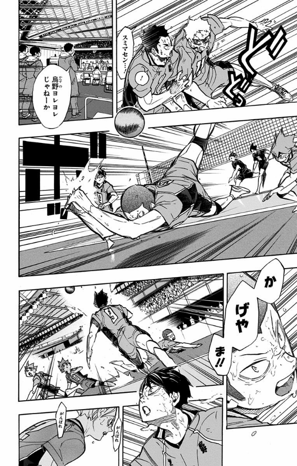 稲荷崎の攻撃を、月島と連携し再び防いだ日向!! “あと1点”で勝敗が決まる緊張の中せめぎ合いは続き、決定打を求めて攻撃のリズムが上り詰めたその時…!? 試練と躍進の対稲荷崎戦──決着!!