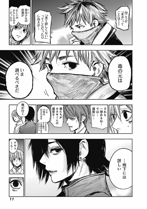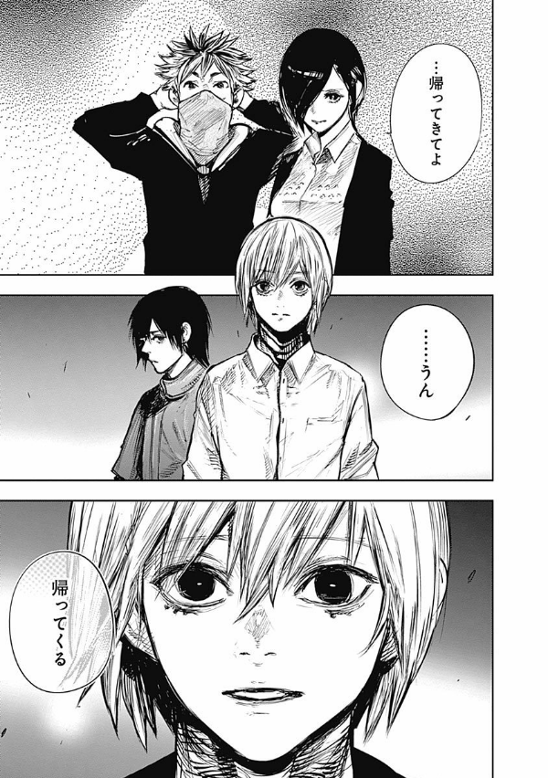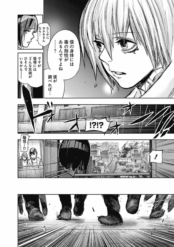 「なにもできないのは もういやなんだ」“人類総喰種化"が進む東京。「毒」の根源を絶つために、〔CCG〕と“喰種"は力を結集して、カネキとアヤトを地下24区へ。そこに立ちはだかる、旧多二福。自身を「この世界」に招き入れた“元凶"を前に、カネキが望んだこととは…? そして、“東京"と“喰種"の未来は──…?