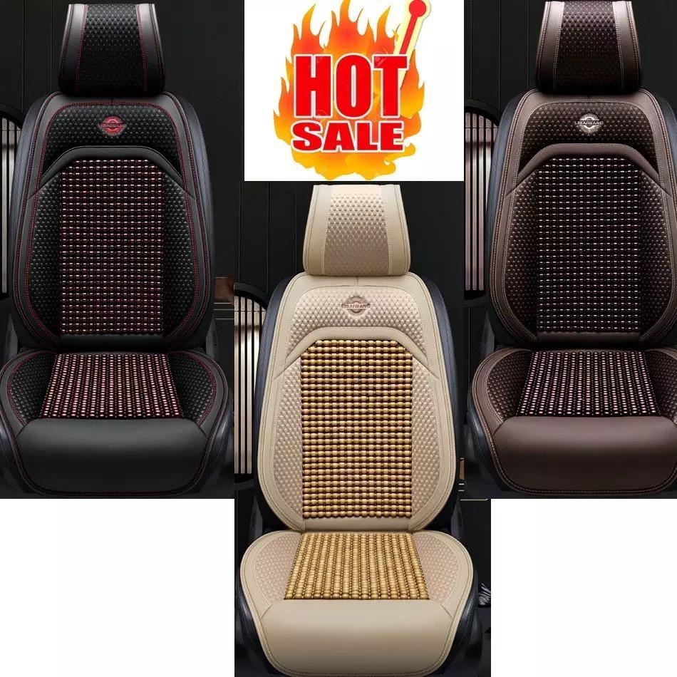 ✨01 cái áo ghế ô tô chất liệu da cao cấp phủ 1 ghế trước, có đan hạt gỗ chống nóng, massage lưng
