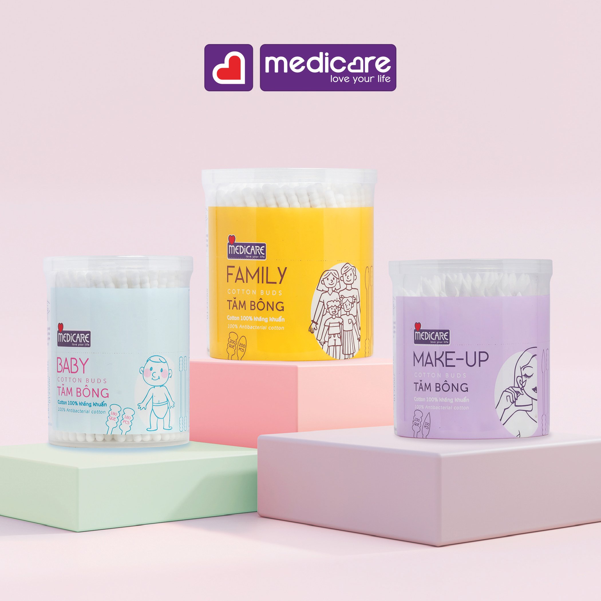 • Tăm bông MEDiCARE được làm từ cotton 100% kháng khuẩn để có thể sử dụng hàng ngày cho bé. Tăm được ép hai đầu bông xoắn với kết cấu chặt gọn, kích cỡ nhỏ, phù hợp với tai bé, thấm hút tốt, thuận tiện cho việc vệ sinh cá nhân hàng ngày cho bé hoặc lau vật dụng có khe, rãnh nhỏ.