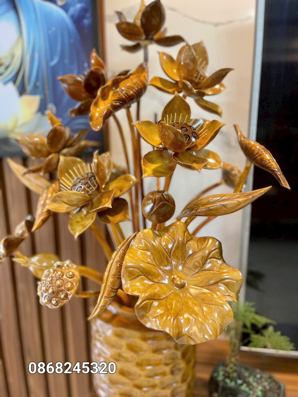 Bình Hoa Sen 21 Cành Gỗ Ngọc Am Thơm Nức Đẹp Giá Xưởng| Xưởng Tượng Gỗ Độc Đáo - 0938410333