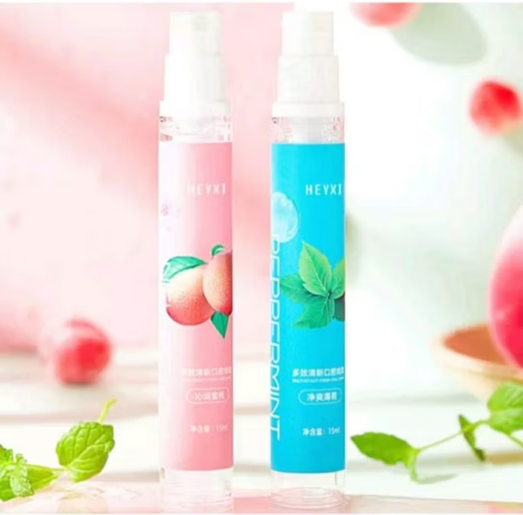 Sản phẩm mới 100%, chất lượng cao!Loại sản phẩm: Xịt thơm miệngDung tích: 15ml Hương: Đào, Bạc hà, Hiệu quả: Công thức thảo dược không chứa cồn và tươi lâuGói hàng bao gồm: 1 Xịt thơm miệng