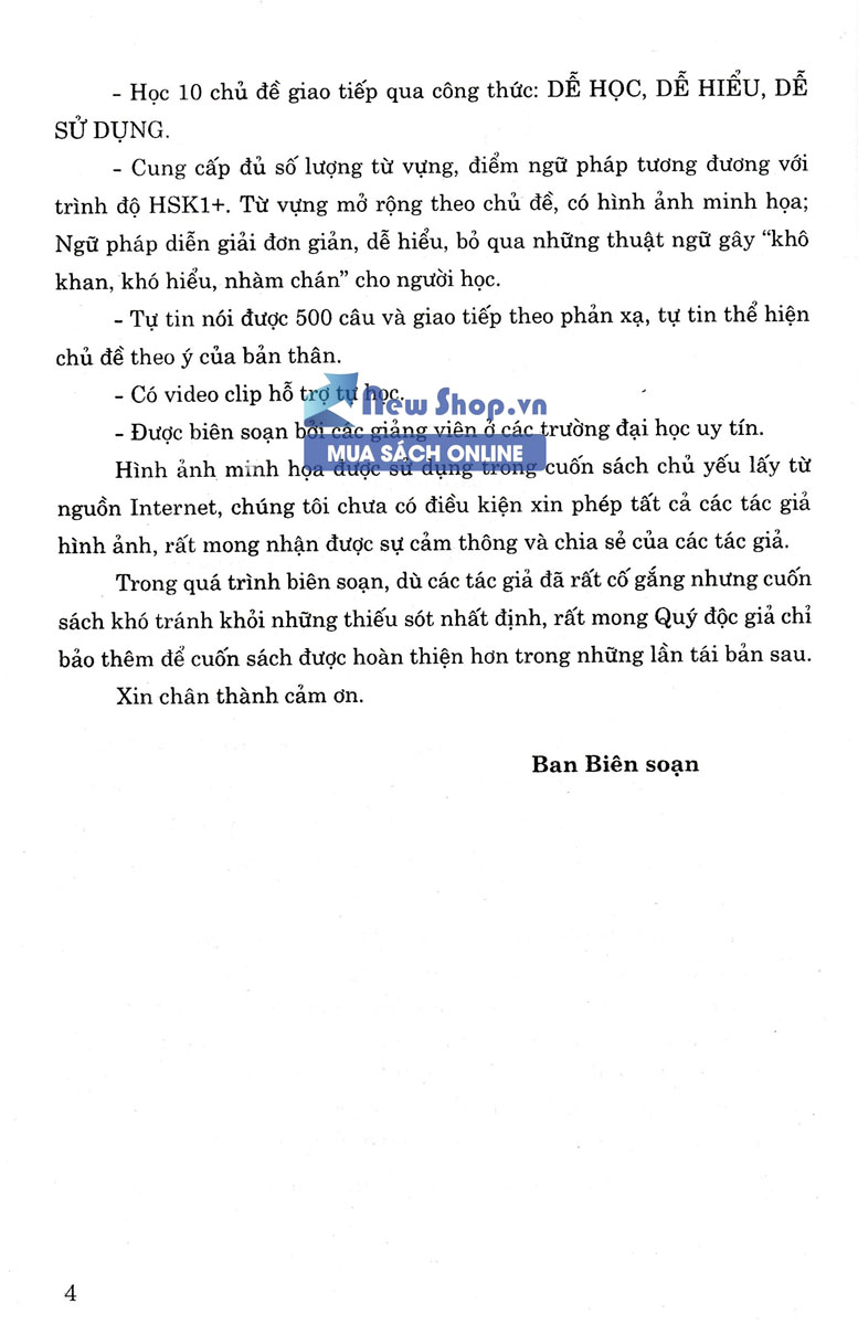 Tâm lý chung khi học ngoại ngữ của đa số người là ngán ngẩm khi phải học thuộc lòng từ mới một cách đơn điệu, nhàm chán. Hơn nữa còn phải nhồi nhét vào đầu và bị ràng buộc tư duy bởi cái gọi là “ngữ pháp”. Do đó, để giúp người học ngoại ngữ theo kiểu truyền thống này dễ dàng nắm bắt cũng như vận dụng thành thạo tiếng Hoa hơn, chúng tôi đã biên soạn cuốn sách này, gói gọn nội dung trong hai chữ CÔNG THỨC – nắm vững cấu trúc câu, ráp từ ngữ vào thực hành và áp dụng vào tình huống thực tế.