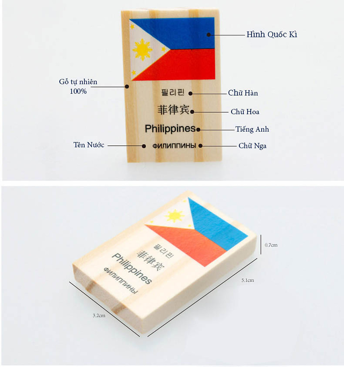 Mua tại TiktokGiới Thiệu Sản phẩm đồ chơi cho bé bằng gỗ bao gồm 100 quân Domino với 99 lá cờ là tên của 99 quốc gia trên thế giới và 1 lá cờ Liên Hợp Quốc. Trên mỗi là cờ được in hình lá cờ. Tên các Quốc gia được viết bằng 4 ngôn ngữ: Tiếng Hàn Quốc, Tiếng TRung Quốc, Tiếng Anh, Tiếng Nga Đặc Điểm Sản Phẩm