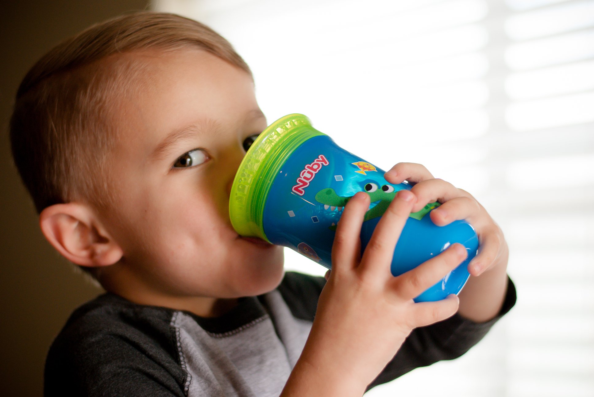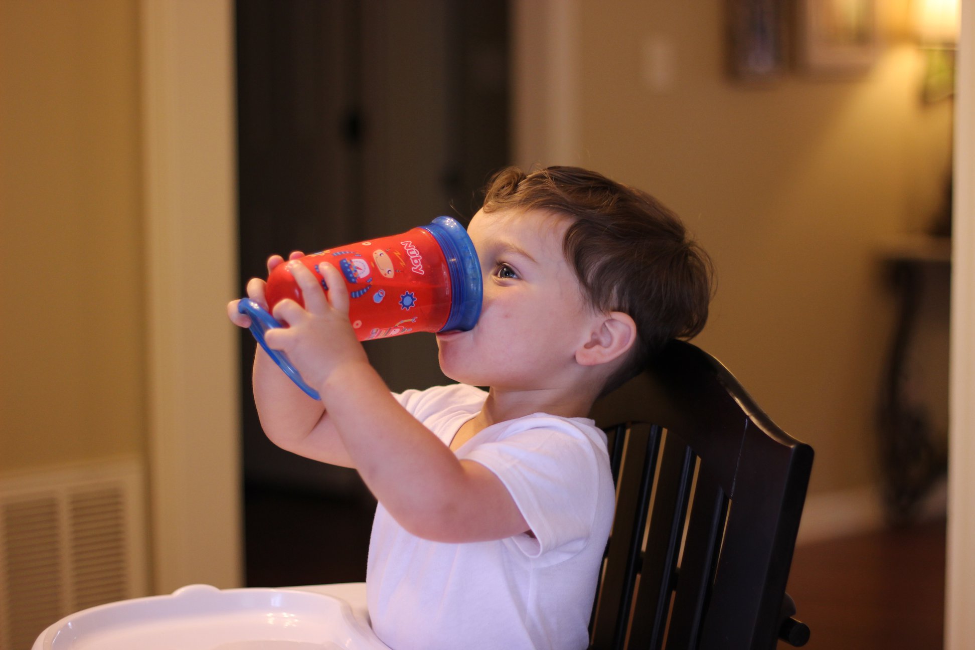 Lucas dùng bình tập uống