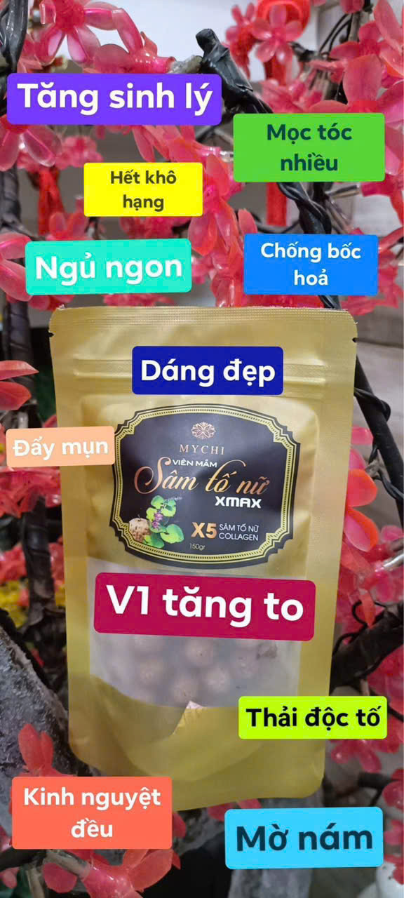 - Sâm tố nữ nhập khẩu từ Thái Lan ( x5 lần): hiệu quả nâng v1 rõ rệt, cao gấp 50 lần so với mầm đậu nành.