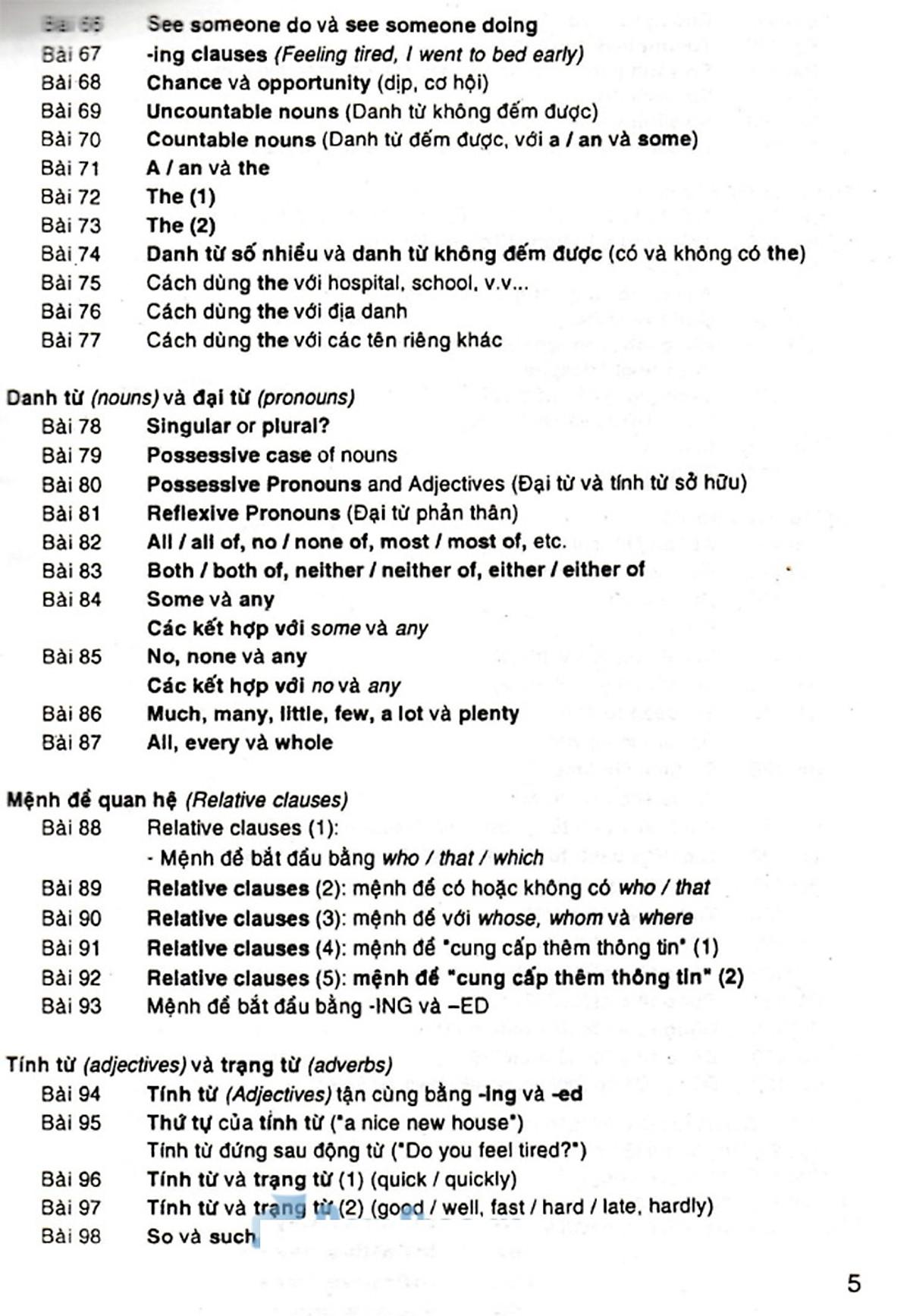 Ngữ pháp tiếng Anh lý thuyết và bài tập thực hành english grammar đề cập đến những vấn đề ngữ pháp thông dụng, cần thiết cho người học tiếng Anh ở mọi trình độ. Với