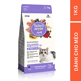 THỨC ĂN HẠT CHO MÈO MỌI LỨA TUỔI TODAY'S DINNER 1KG THÔNG TIN SẢN PHẨM THÀNH PHẦN Loại sản phẩm: Thức ăn hỗn hợp hoàn chỉnh cho mèo Tên sản phẩm: Today’s dinner Nhà sản