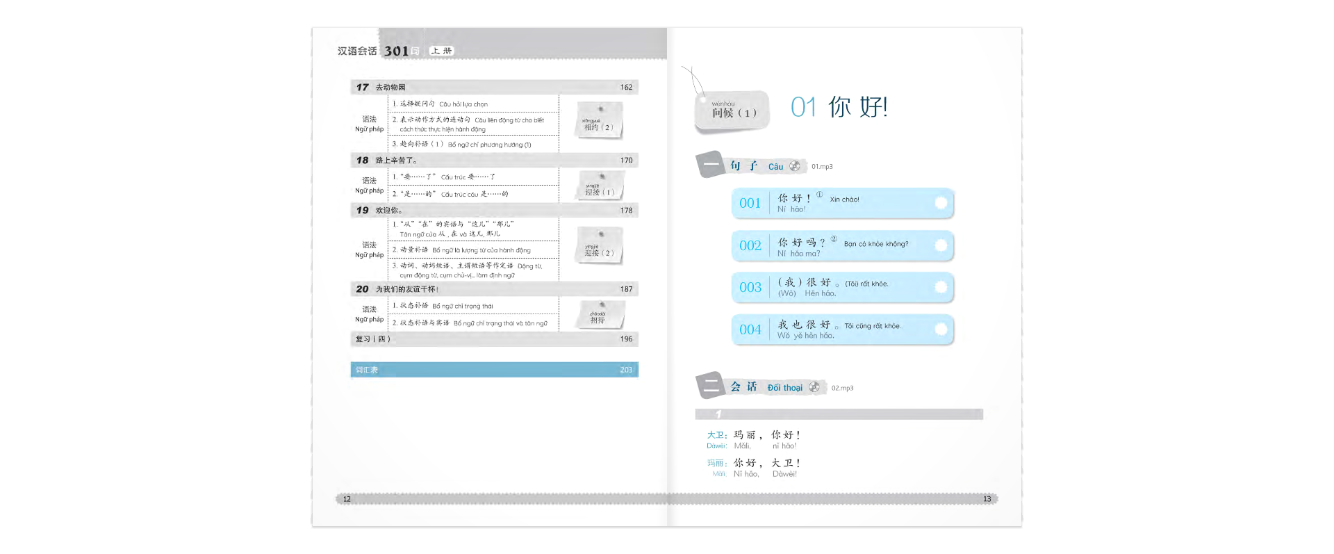 301 câu đàm thoại tiếng Trung Quốc là giáo trình dạy tiếng Trung Quốc cấp tốc được biên soạn dành cho những người mới học ngôn ngữ này. Giáo trình gồm tổng cộng 40 bài học