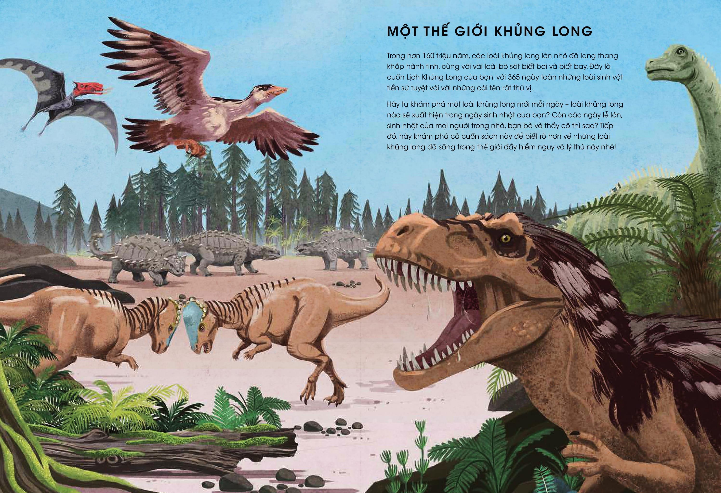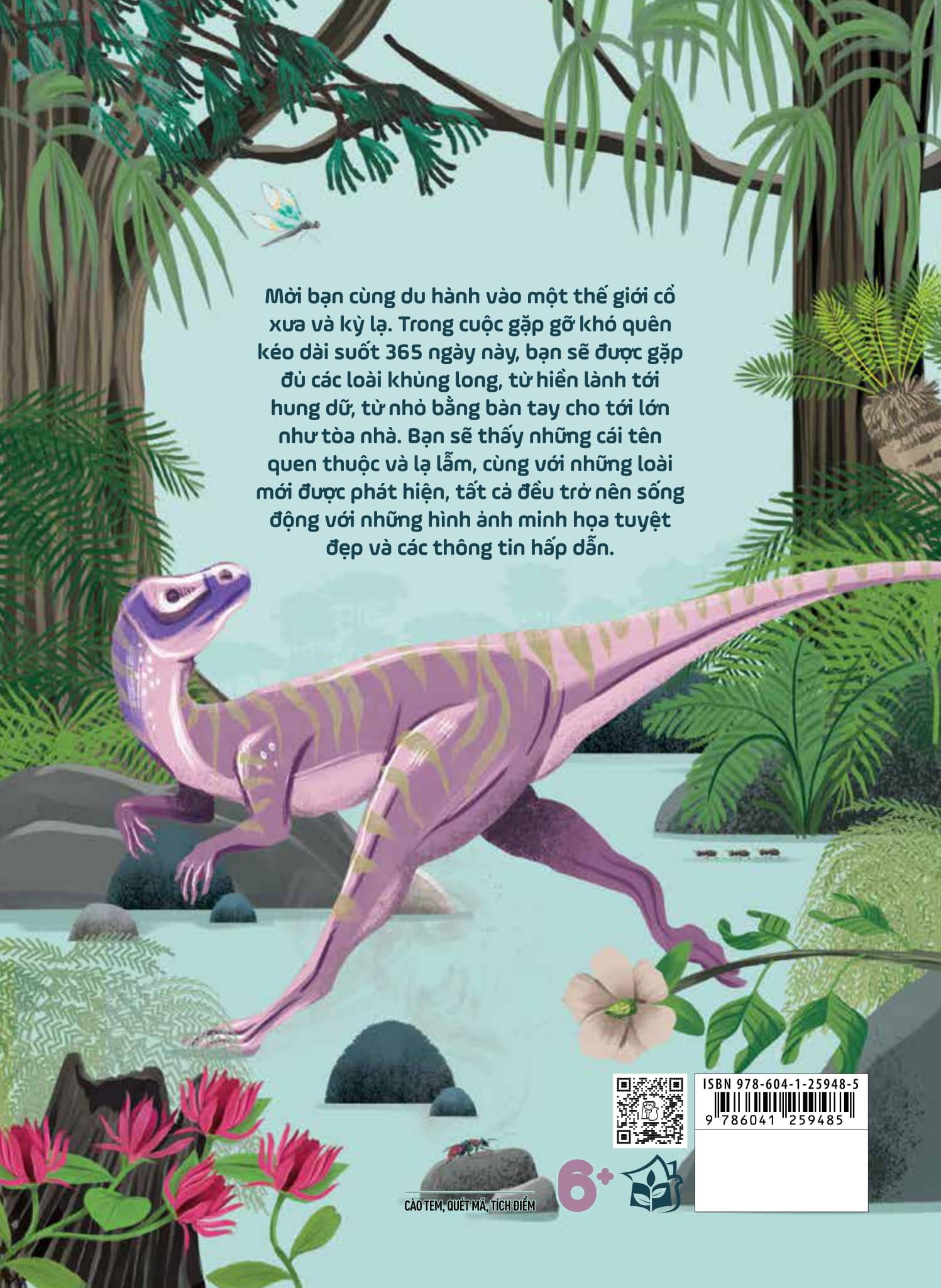 Mua tại Tiktok365 Ngày Khủng Long Cuốn sách ‘365 ngày khủng long’ mời bạn cùng du hành vào một thế giới cổ xưa và kỳ lạ. Trong cuộc gặp gỡ khó quên kéo dài suốt 365 ngày này, bạn sẽ được gặp đủ các loài khủng long, từ hiền lành tới hung dữ, từ nhỏ bằng bàn tay cho tới lớn như tòa nhà. Bạn sẽ thấy những cái tên quen thuộc và lạ lẫm, cùng với những loài mới được phát hiện, tất cả đều trở nên sống động với những hình ảnh minh họa tuyệt đẹp và các thông tin hấp dẫn.