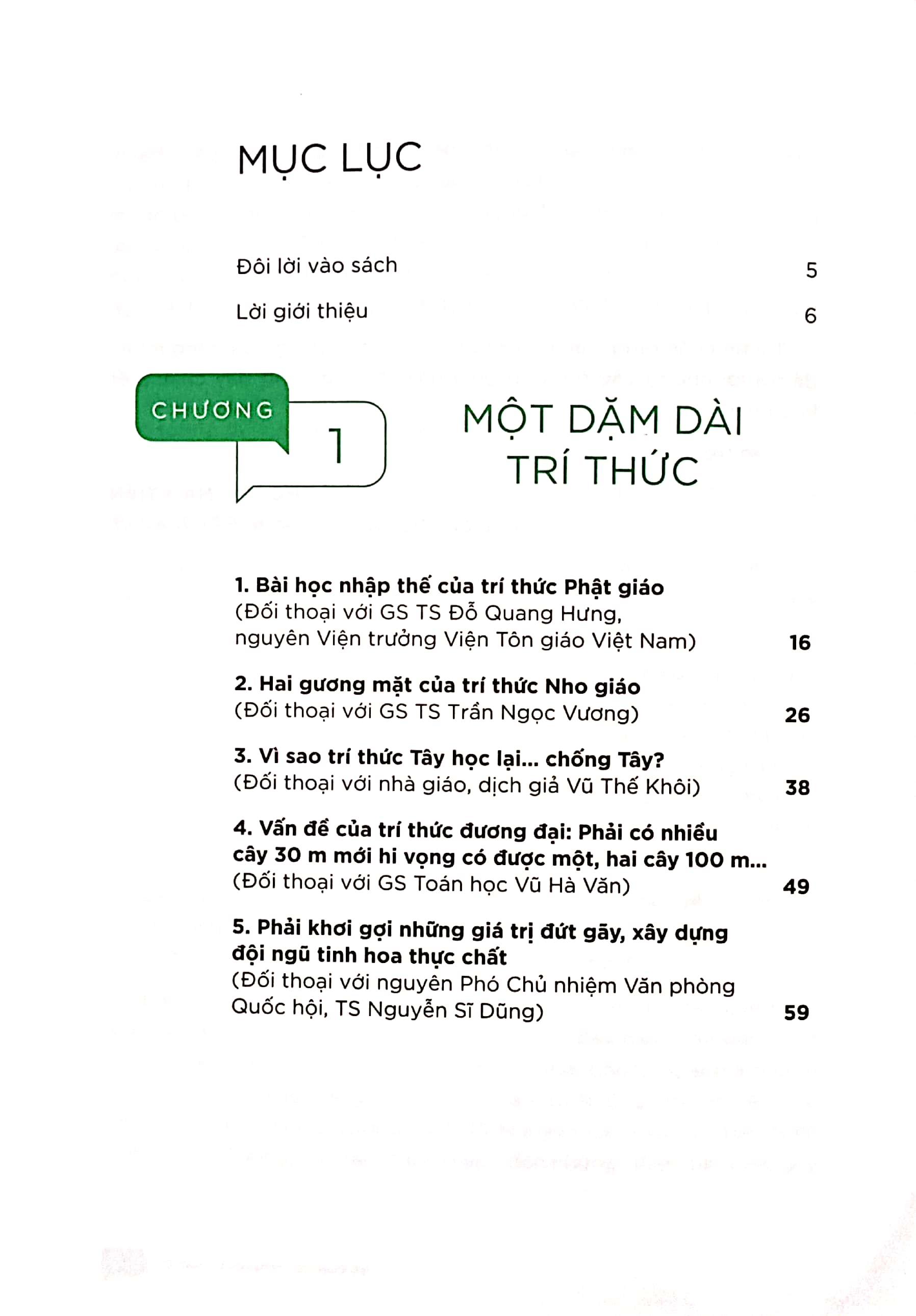 Câu trả lời chính là học hỏi kinh nghiệm và tiếp thu tri thức từ những bậc tiền bối đi trước. 39 Cuộc Đối Thoại Cho Người Trẻ là 39 câu chuyện, 39 tâm sự, 39 khắc khoải, 39 thông điệp muốn sẻ chia, được chắt lọc từ kinh nghiệm và vốn sống dạn dày của 39 trí thức trong những lĩnh vực khác nhau, thuộc nhiều thế hệ khác nhau. Tuy mỗi người theo đuổi một lĩnh vực tri thức khác nhau, nhưng tựu trung lại, tất cả đều bày tỏ niềm tin chân thành, da diết và đầy sức nặng.
