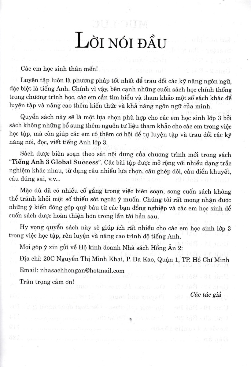 Hy vọng quyển sách này sẽ giúp ích rất nhiều cho các em học sinh lớp 3 trong việc học tập, rèn luyện và nâng cao trình độ tiếng Anh .
