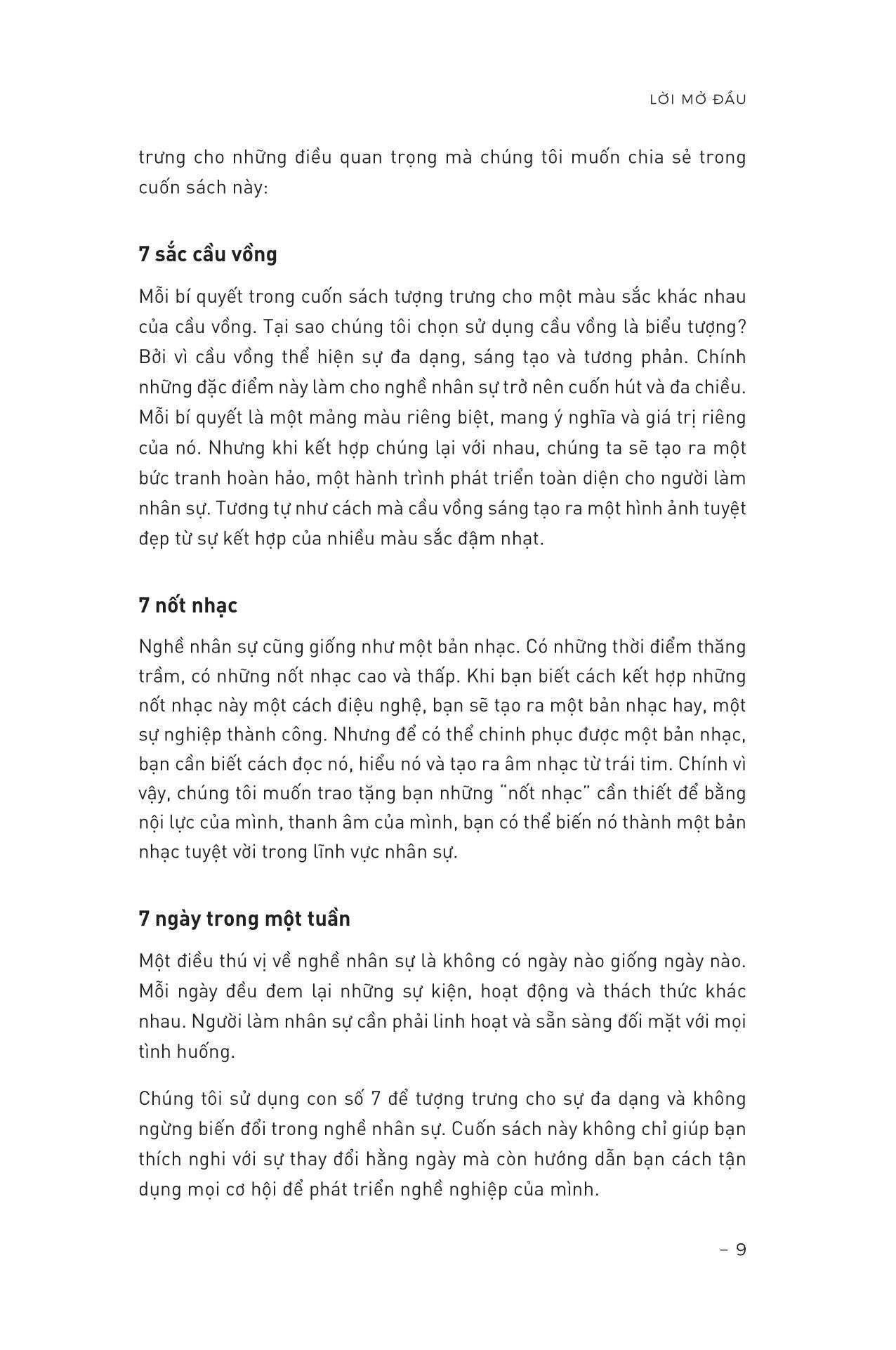 Cuốn sách được viết với sự say mê, nhiệt tình, nhằm mong muốn có thể truyền đi tinh thần làm nghề, giúp độc giả có những hình dung về lộ trình phát triển của nghề nhân sự, và từng bước “chạm” đến hành trình phát triển của cá nhân.