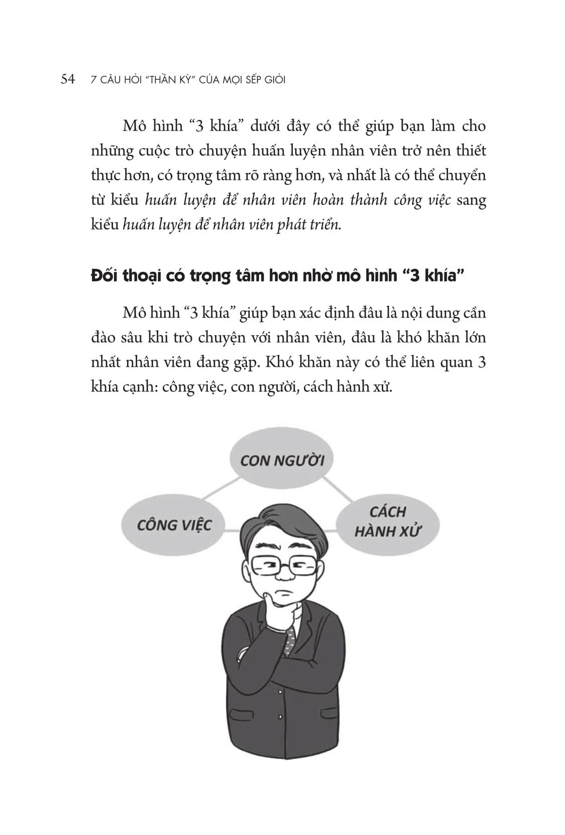 Nội dung chính của cuốn sách 7 câu hỏi “thần kỳ” của mọi sếp giỏi này là 7 câu hỏi “thần kỳ” giúp các nhà quản lý thoát khỏi 3 vòng tròn luẩn quẩn nêu trên và cải thiện cách làm việc.