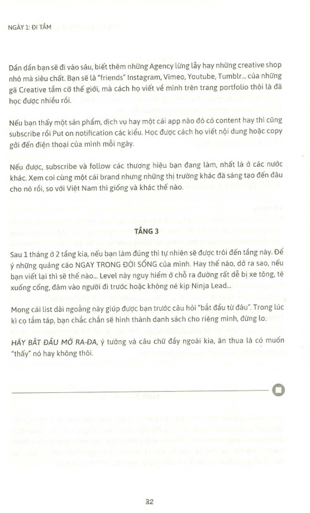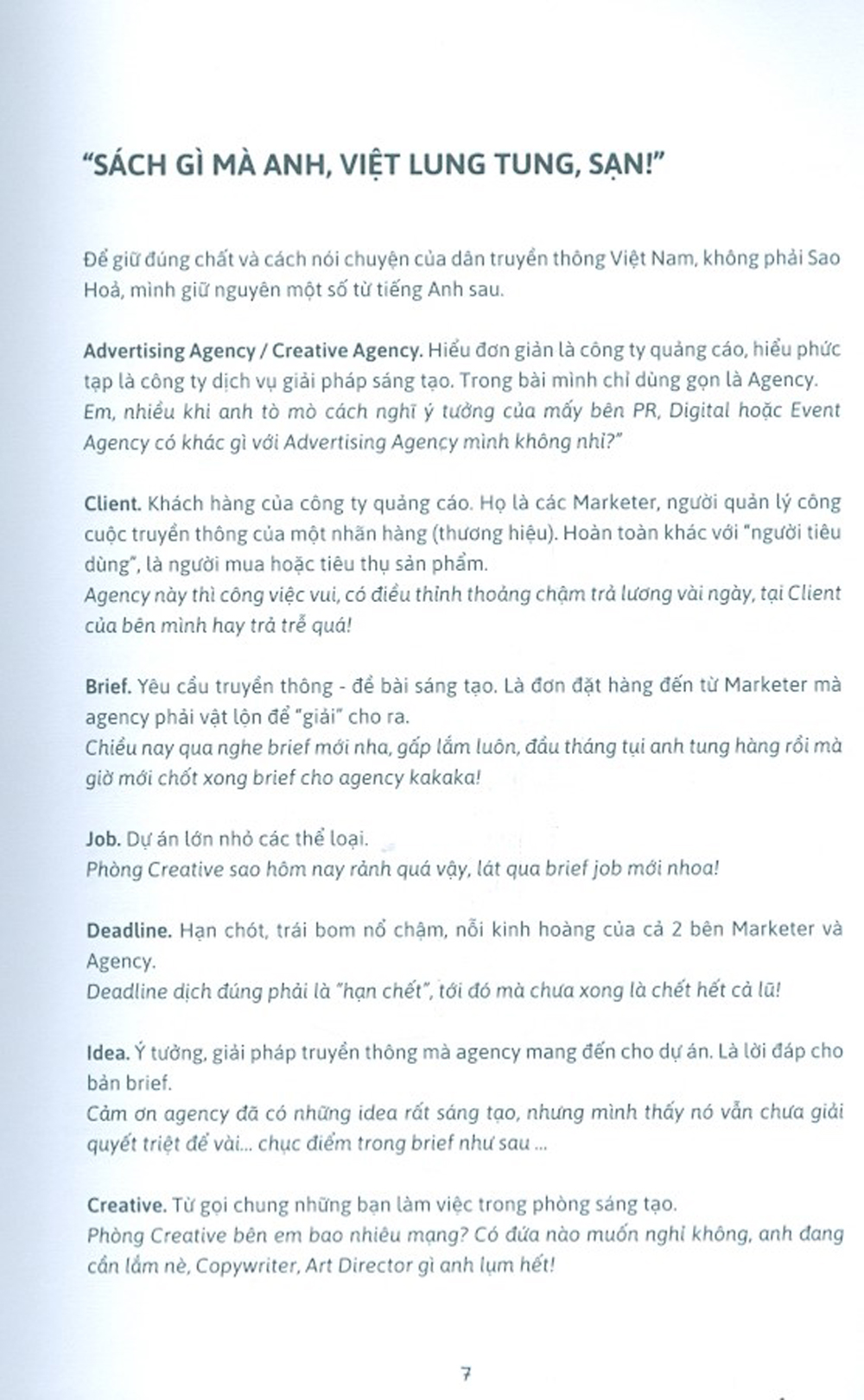 Nhưng dẫu có được chuẩn bị kĩ càng, giáo trình quốc tế 5 sao đi nữa thì nàng (Quảng) Cáo lúc nào cũng kiêu kì. Ở trường thì học hành, vào công ty thì vừa hành vừa học. Để có ý tưởng và câu chữ xài được, các “mầm non sáng tạo” phải va chạm liên tục và tự mình vỡ lấy những bài học, càng nhanh càng tốt, không được để deadline qua mặt.