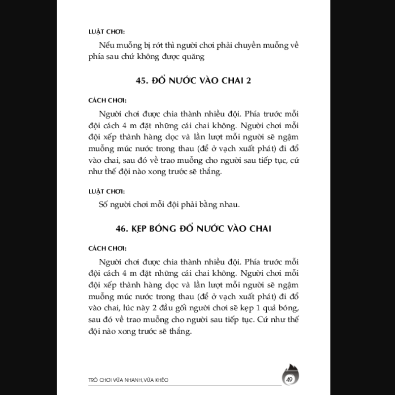 Đa dạng các loại trò chơi: Sách giới thiệu nhiều trò chơi khác nhau, từ những trò chơi đơn giản đến những trò chơi phức tạp, phù hợp với mọi lứa tuổi và điều kiện khác nhau.