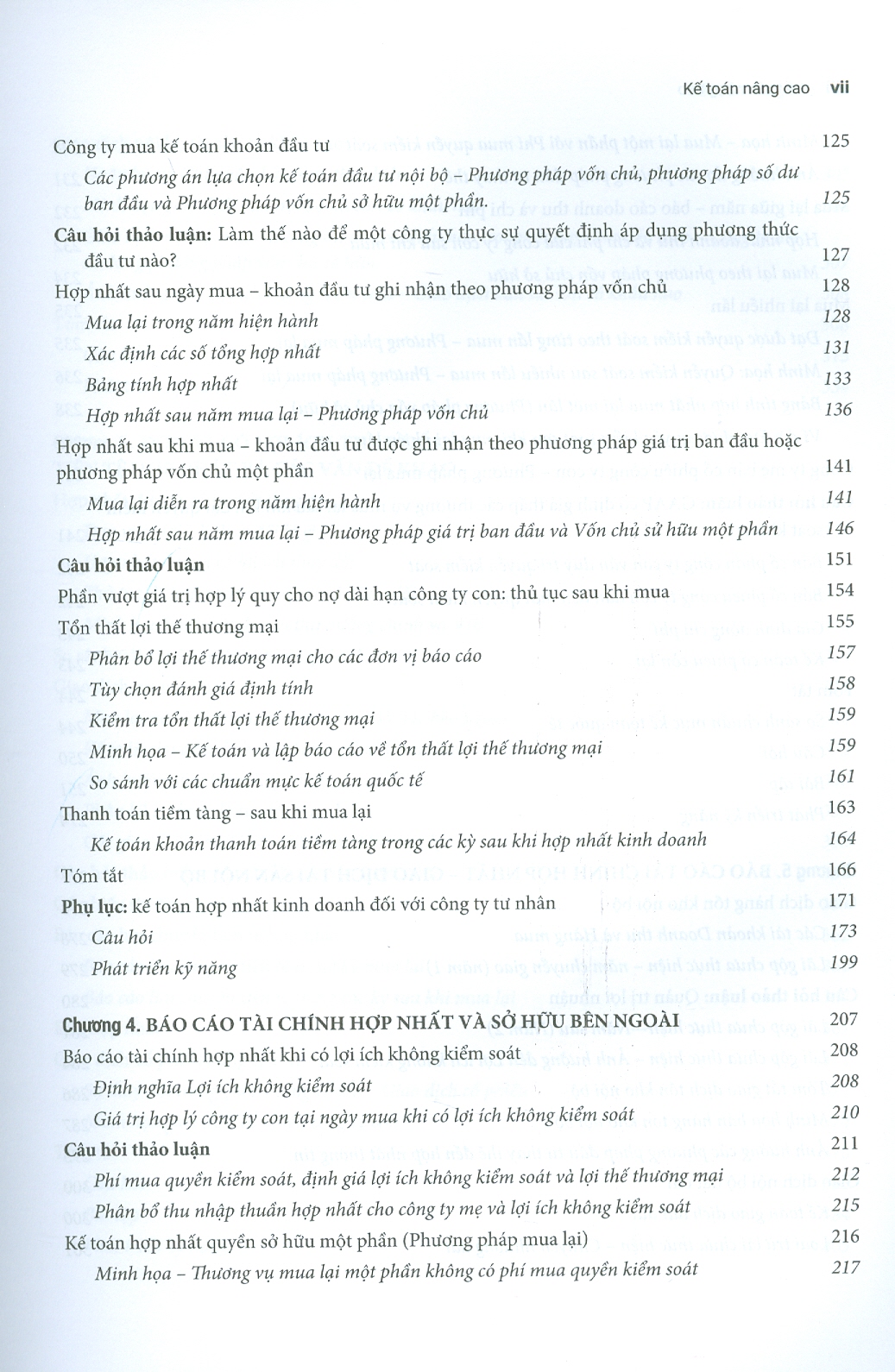 Một số chương đầu của cuốn  này sẽ trình bày về kế toán và việc lập báo cáo các hoạt động đầu tư của doanh nghiệp. Nội dung tập trung vào các khoản đầu tư khi một công ty có ảnh hưởng đáng kể hoặc kiểm soát công ty khác thông qua sở hữu cổ phần có quyền biểu quyết.