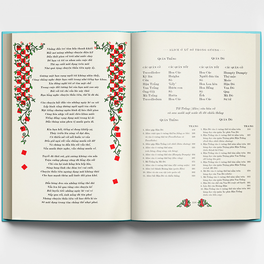 Với lần tái bản này, Alice ở xứ sở diệu kì & Alice ở xứ sở trong gương của Lewis Carrol đã trở lại với một diện mạo hoàn toàn mới. Những hình minh họa hoàn toàn mới cùng các trò chơi tương tác độc quyền từ studio thiết kế MinaLima sẽ mang đến một chuyến đi trở về tuổi thơ cho độc giả ở mọi lứa tuổi.