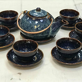 Bộ ấm chén Bát Tràng - Sản phẩm bao gồm: 1 Ấm, 6 chén, 7 đĩa kê - dung tích ấm 350ml - Chất liệu: Gốm men lam Bát Tràng bọc đồng. - Bộ ấm