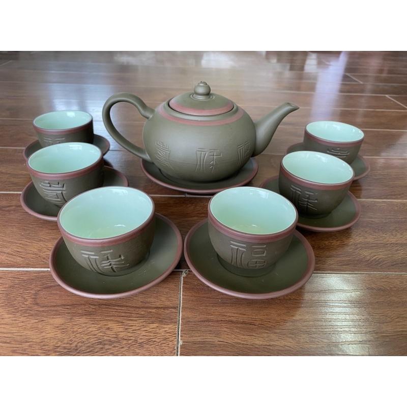 ✨Ấm Chén Trà Tử Sa Khắc Chữ Phúc Lộc Thọ Bát Tràng Tống Xanh Chỉ Đỏ lòng xanh