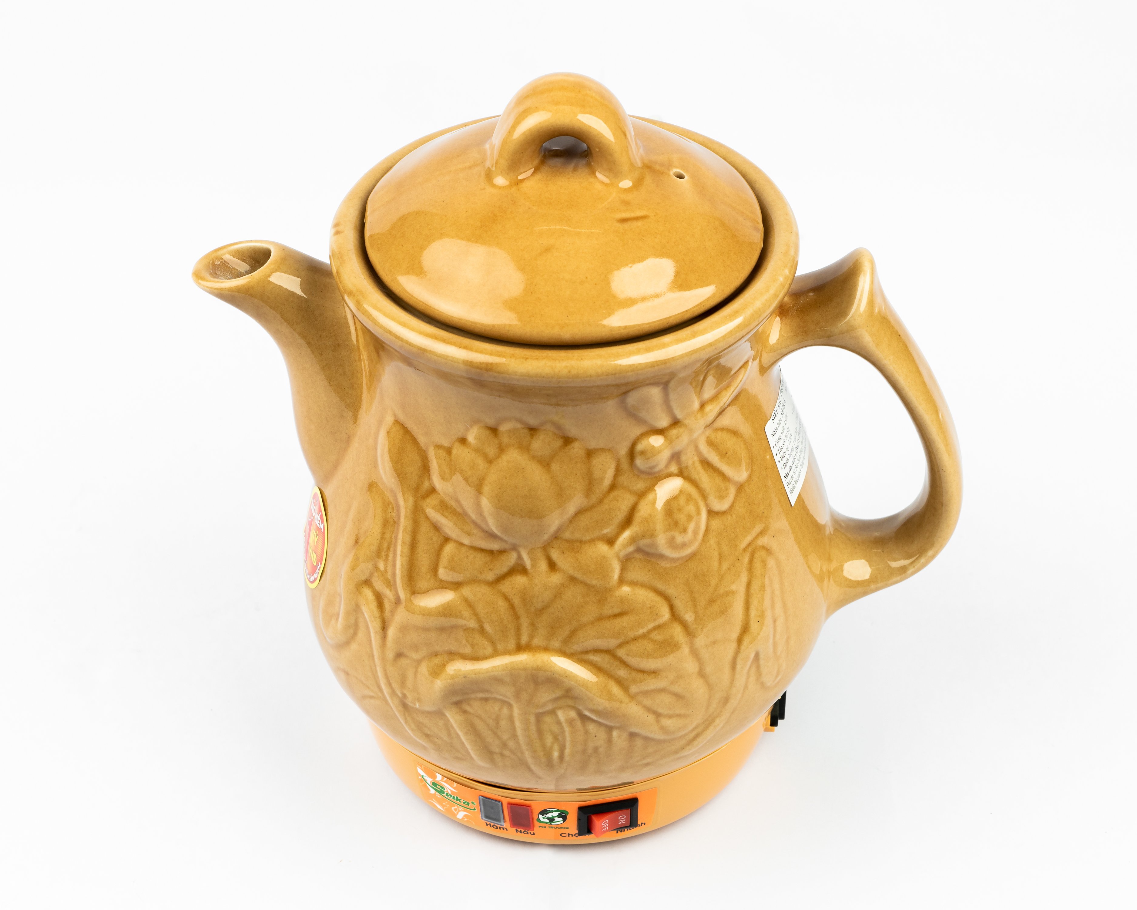 - Dung tích: 3.2L / Công suất: 450W - Chất liệu gốm được nung ở nhiệt độ 1300 độ C - Hoàn toàn khử hết chì trong đất. - Men phủ ấm là men tự