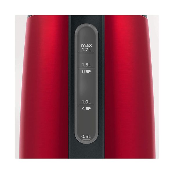 Chỉ báo mực nước để xem lượng nước cần thiết: Ấm siêu tốc có dung tích 1,7L và tốt nhất là bạn chỉ đổ đầy lượng nước đến mức mà bạn thực sự cần. Nhờ vào chỉ báo mức nước dễ đọc, bạn luôn có thể xem lượng nước trong ấm và đổ lượng nước theo mức cần thiết.