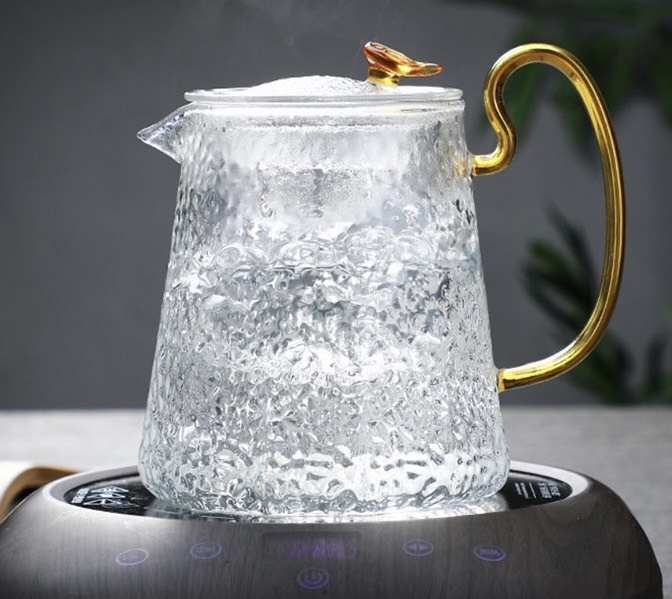 ẤM TRÀ THỦY TINH CÓ LÕI LỌC CHỊU NHIỆT NHIỆT CAO CẤP VÂN NHÁM QUAI VÀNG CRYSTAN 500ml