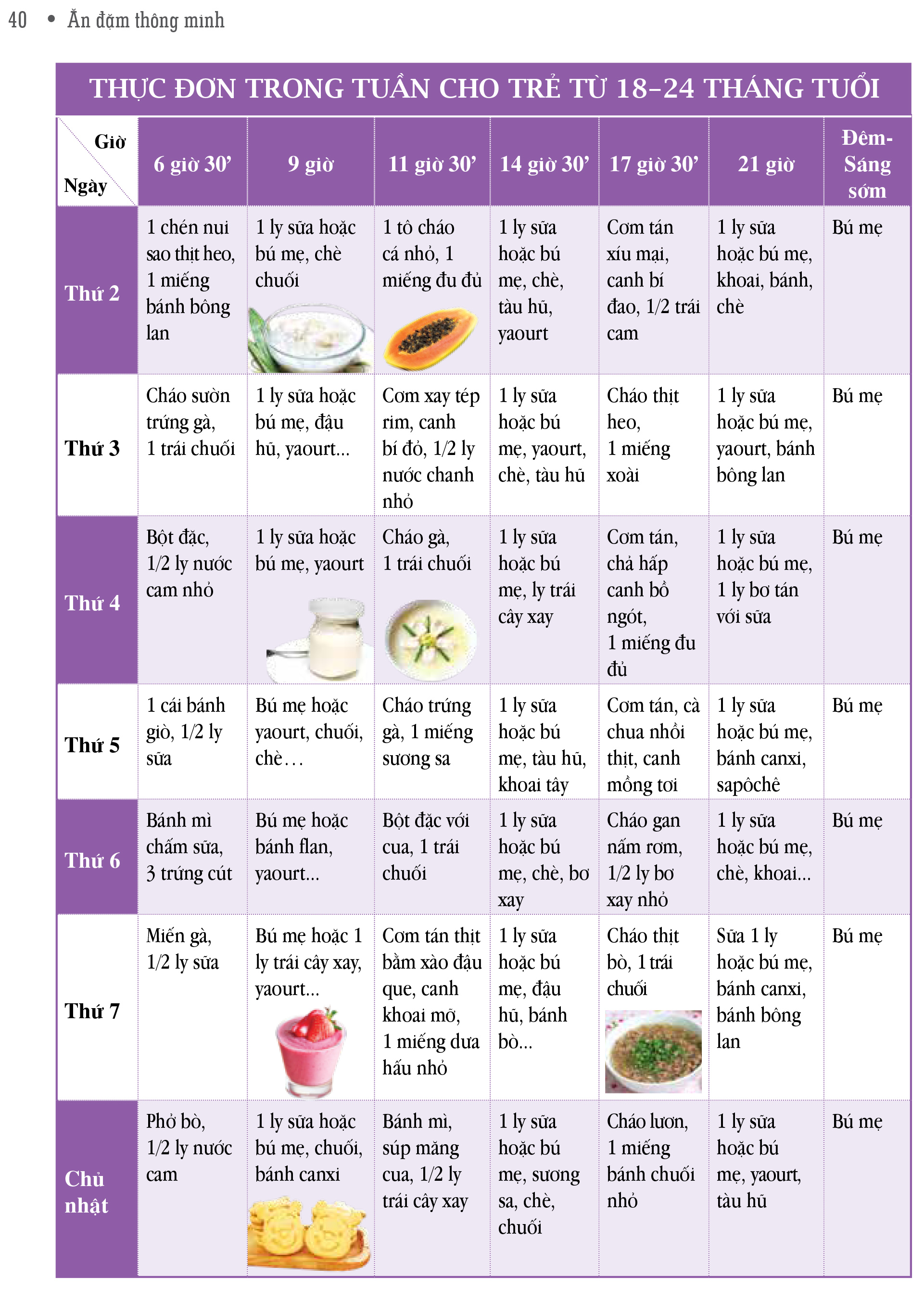 Đặc biệt, phần thực đơn với tính ứng dụng cao được nghiên cứu một cách kỹ lưỡng tại Trung tâm dinh dưỡng TP.HCM, dành riêng cho trẻ em Việt Nam với hướng dẫn chi tiết cách làm thức ăn cho trẻ và các thực đơn sử dụng ngôn ngữ hình ảnh sinh động, dễ chế biến nhưng rất hiệu quả, vừa bổ sung dinh dưỡng cho trẻ theo từng độ tuổi, vừa giúp trẻ trở nên thích thú với việc ăn uống.