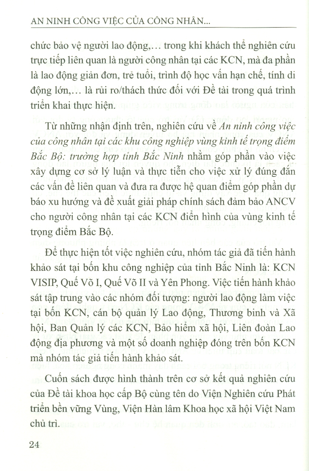 ✨An Ninh Công Việc Của Công Nhân Tại Các Khu Công Nghiệp Vùng Kinh Tế Trọng Điểm Bắc Bộ - Trường Hợp Tỉnh Bắc Ninh (Sách chuyên khảo)