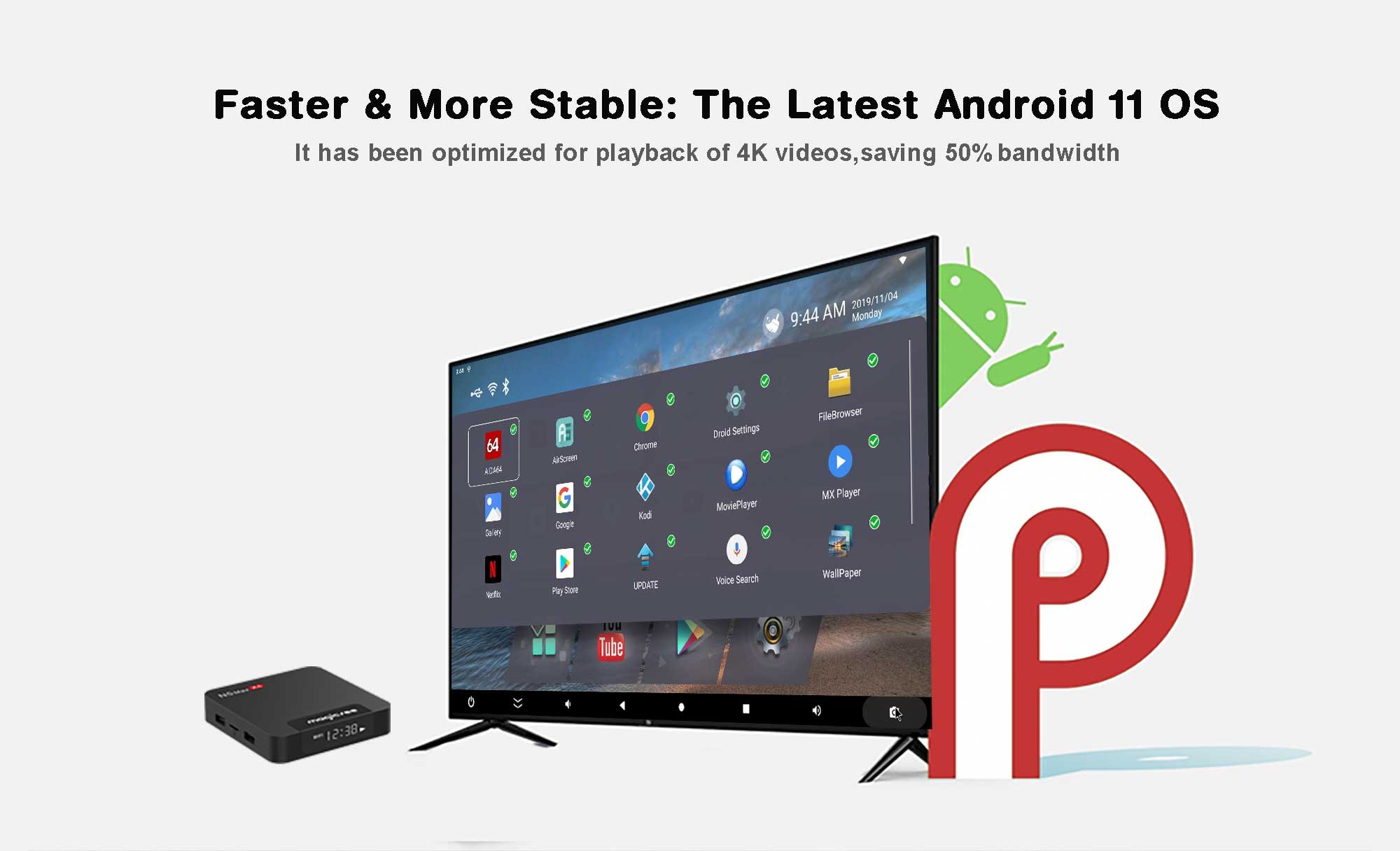 Android tivi X96Q có điều khiển giọng nói cử chỉ tay người dùng hỗ trợ tìm kiếm bằng tiếng việt Android 10 cài sẵn chương trình tivi truyền hình cáp, Phim HD miễn phí vĩnh
