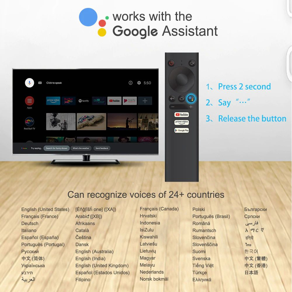 Android tivi X96Q có điều khiển giọng nói cử chỉ tay người dùng hỗ trợ tìm kiếm bằng tiếng việt Android 10 cài sẵn chương trình tivi truyền hình cáp, Phim HD miễn phí vĩnh