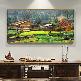 Tranh treo tường làng quê Việt Nam yên bình - Kích thước của tranh : Kích thước : 45x70cm - 50x80cm - 60x100cm - 70x120cm - Chất liệu : Tráng gương - Khách hàng muốn