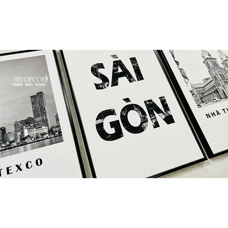 Tranh treo tường cảnh sài gòn - Kích thước của tranh : Kích thước : Size 1: 30x45cmx2 tấm+45x65cmx1 tấm Size 2: 40x60cmx2 tấm + 60x80x1 tấm Size 3:50x70cmx2 tấm + 70x90x1 tấm - Chất