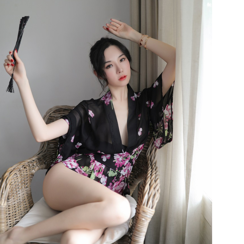 ✨Áo choàng tắm Pyjama voan hoa ngắn tay gợi cảm