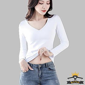 ✨Áo cổ tim, Áo cổ V nữ KING Dáng dài tay, vải cotton co giãn 4 chiều W06