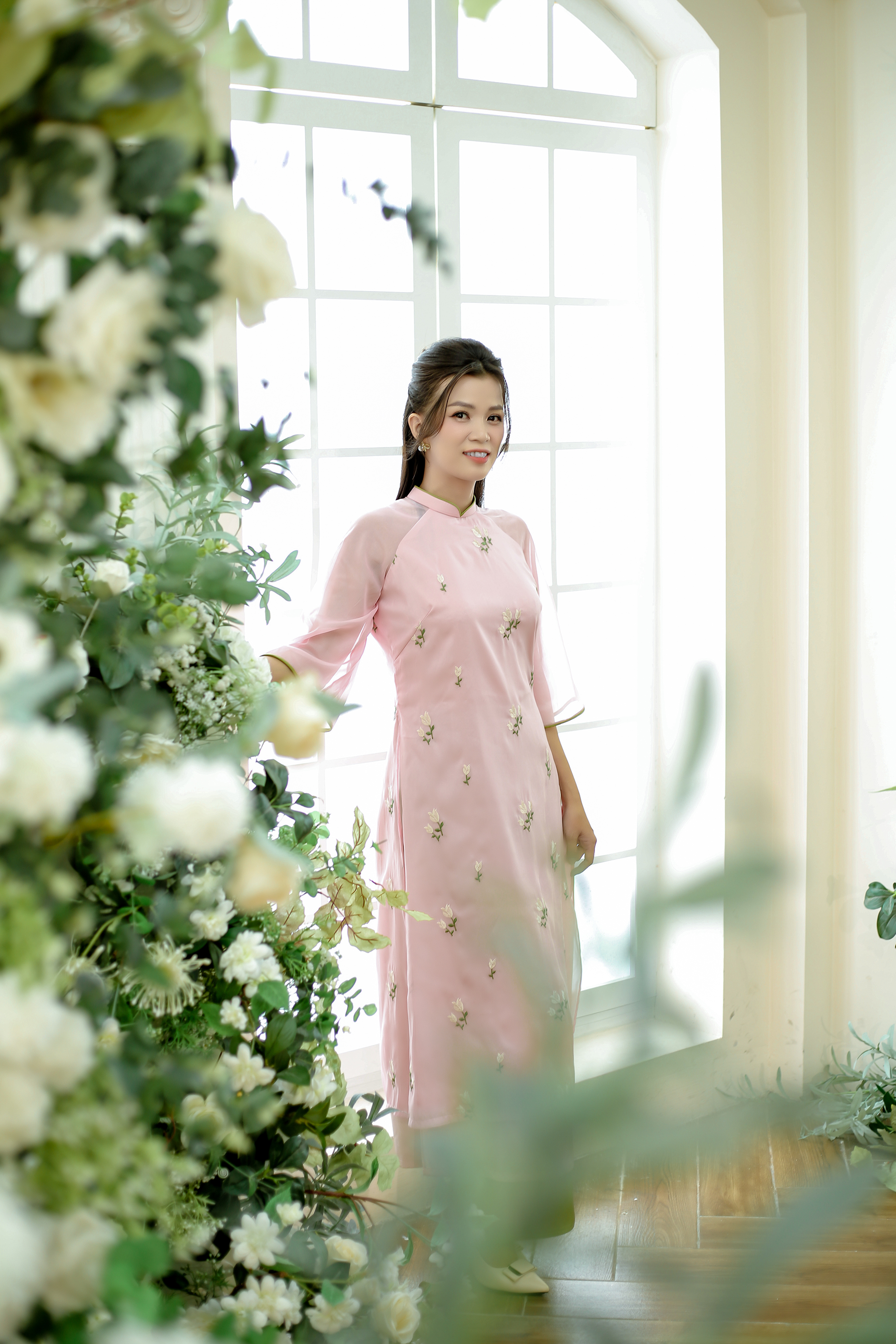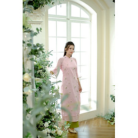 Áo dài màu hồng cách tân 4 tà thêu hoa #aodaicachtan #phapphuclechua #aodaitet #phapphuc