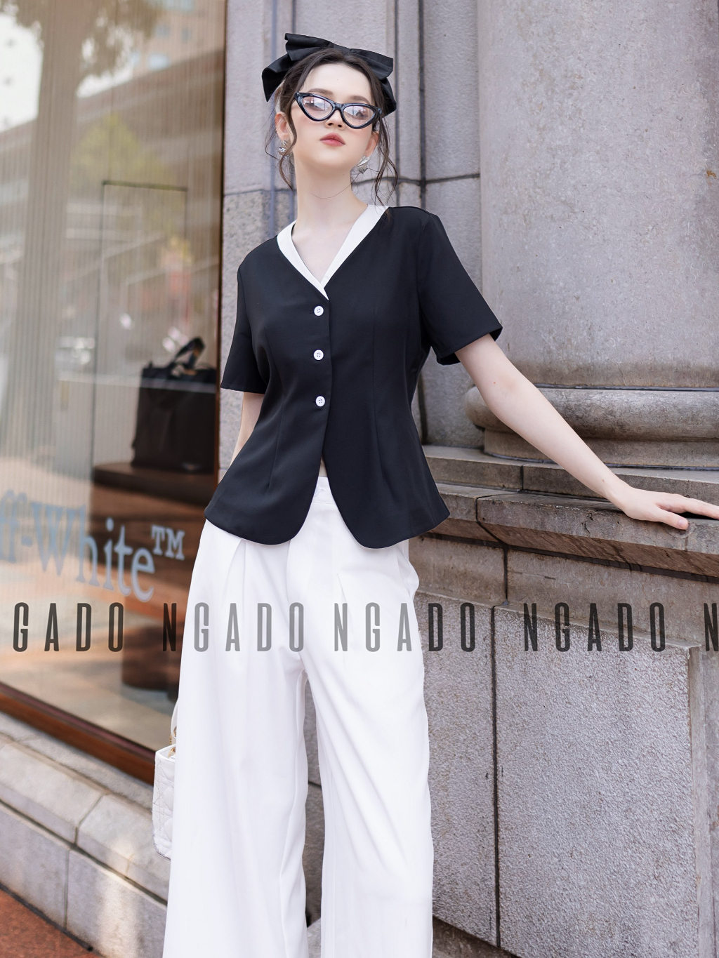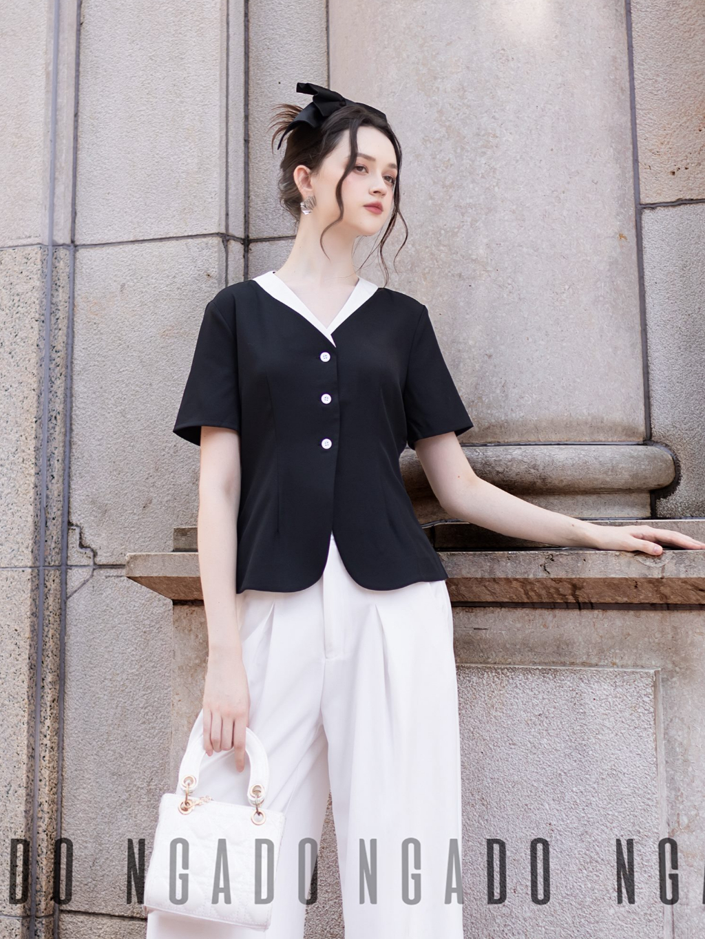 ✨Áo đen cổ viền trắng NGADO , Áo kiểu nữ , áo thiết kế