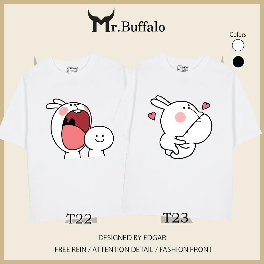 ✨Áo đôi , áo thun cặp nam nữ tay lỡ Unisex thỏ ngoạm đầu form rộng vải cotton 100% T22T23 - Mr.Buffalo