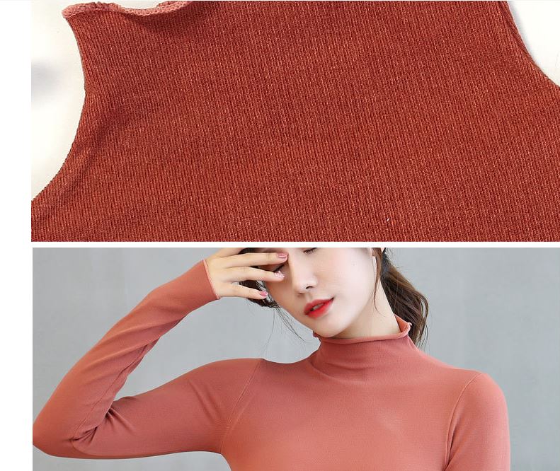 Áo giữ nhiệt nữ cổ lọ cao, sợi len mềm mại, đàn hồi tốt, ôm lấy thân hình, rất gợi cảm và nữ tính.