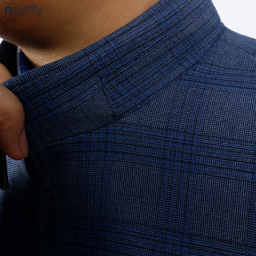 Áo Jacket nam 2 lớp cổ trụ Novelty Casual caro xanh dương NJKMINMT3B2305262