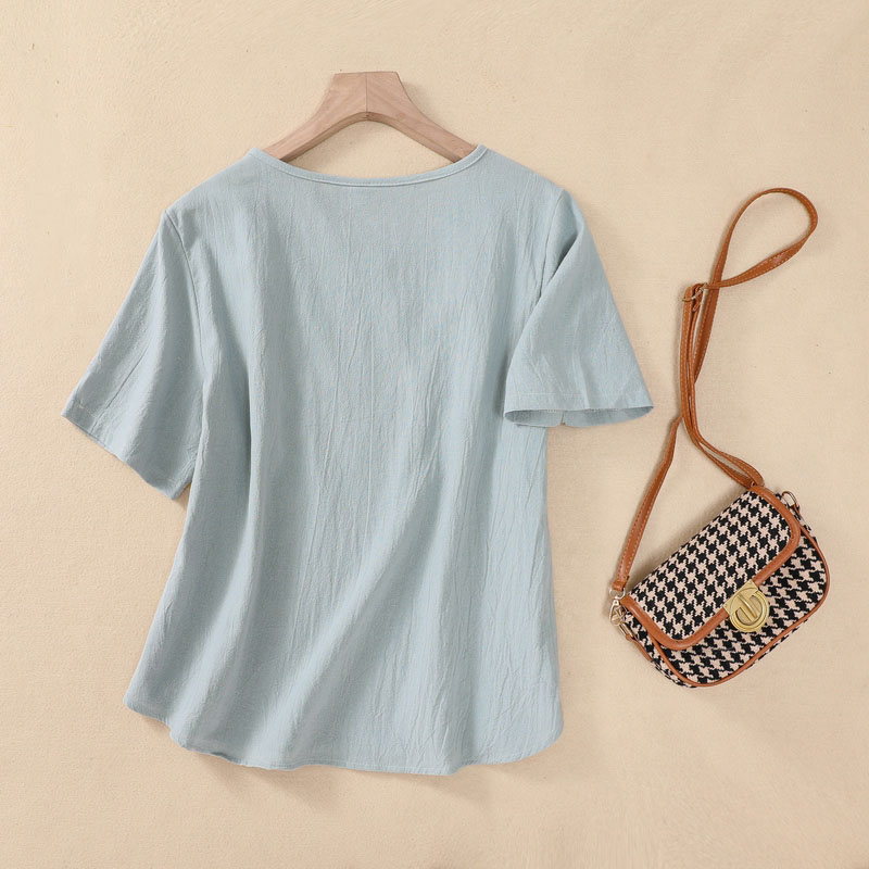 ✨Áo kiểu nữ đẹp, chất liệu Đũi, vải mềm mát,dễ chịu khi mặc, áo kiểu form rộng tay ngắn ale18