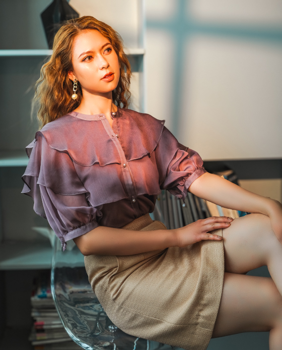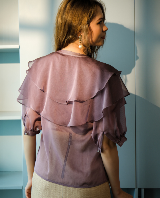 Áo Organza Mường Hoa TOP181 thời trang thiết kế Hity Bí ẩn như một thỏi nam châm huyền bí tỏa ra vẻ đẹp thanh lịch và quyến rũ - màu tím khói Màu tím khói
