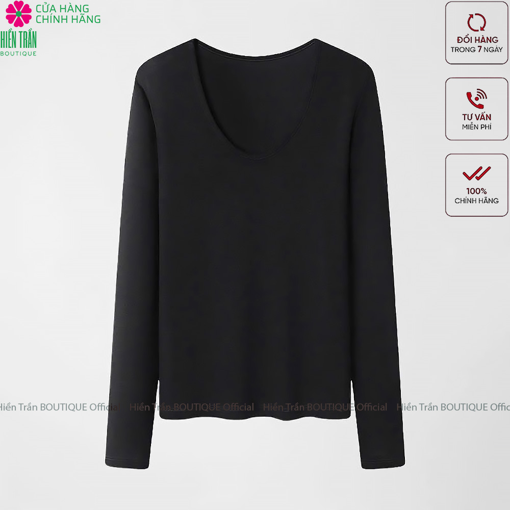 ✨Áo phông nữ dài tay cổ tim Hiền Trần BOUTIQUE chất cotton dẻo cao cấp co giãn áo thun nữ tay dài thu đông A8
