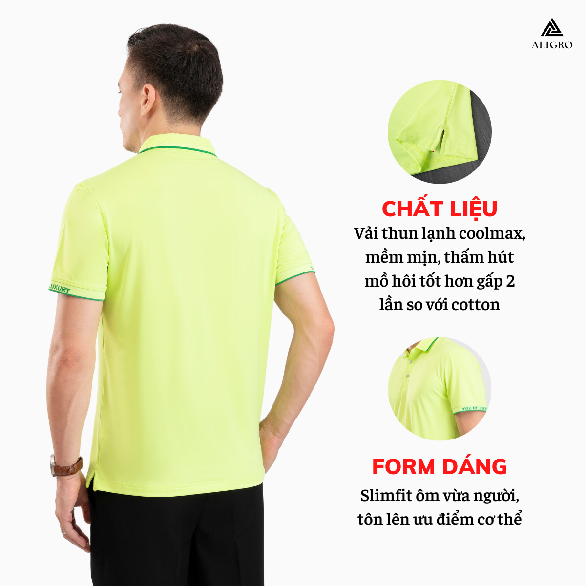 ✨Áo polo golf nam ngắn tay ALIGRO chất vải coolmax màu xanh chuối năng động ALGPLO104