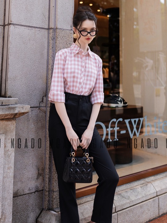 ✨Áo sơ mi caro hồng dài tay NGADO