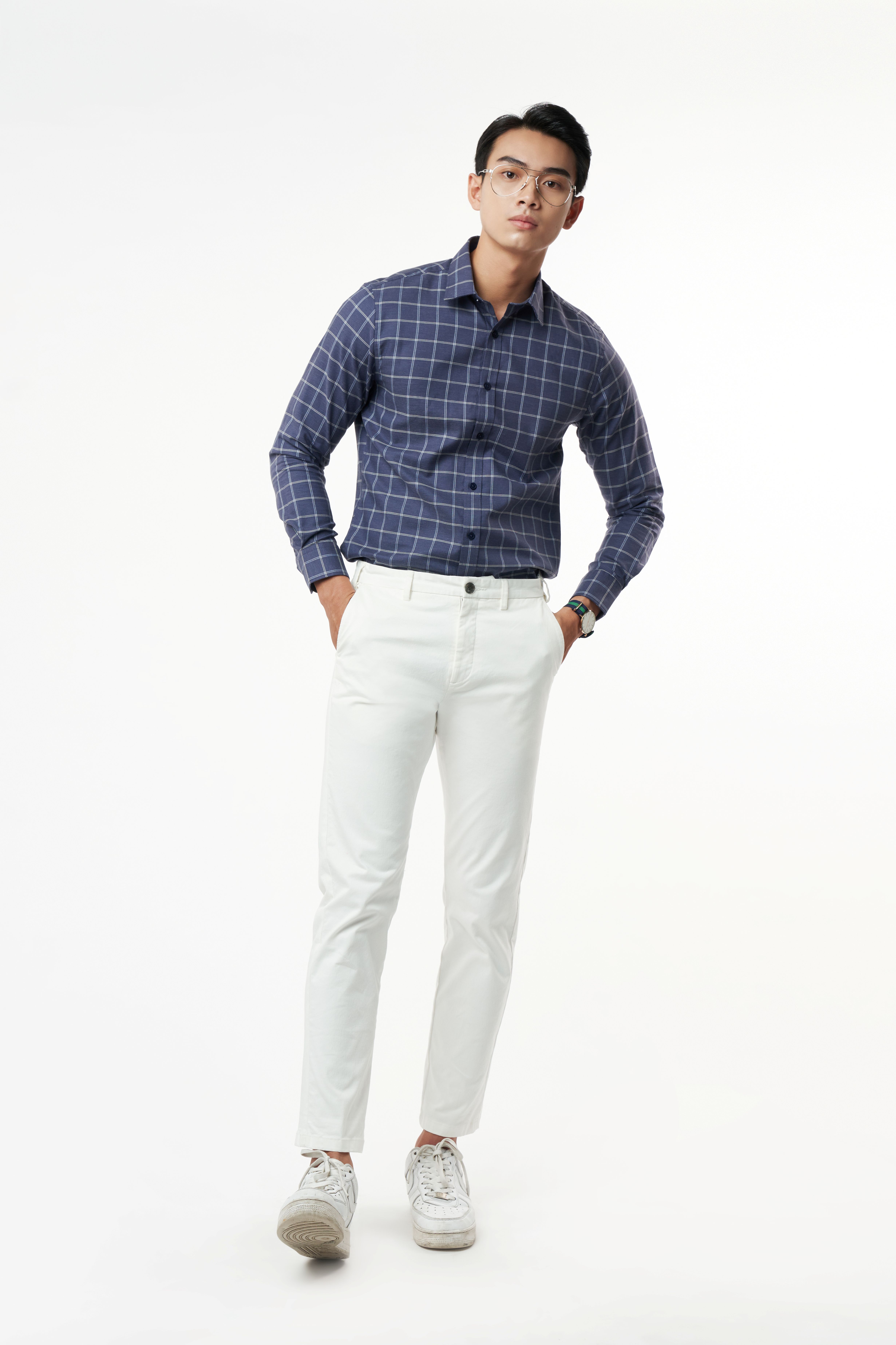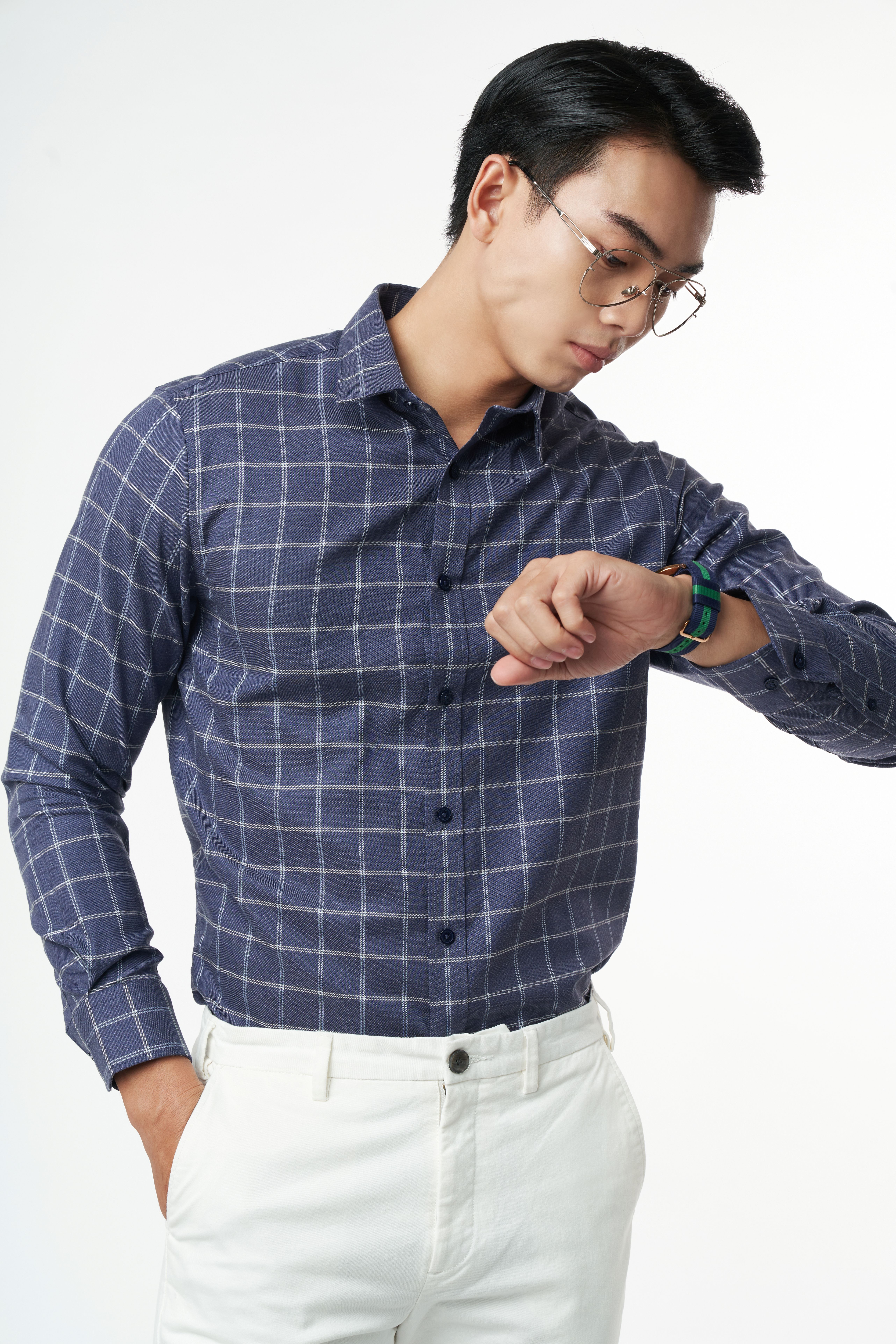 (V) MÔ TẢ: Form Taylor, tai dài Form áo tiêu chuẩn với form áo rộng vừa phải, không ôm sát cơ thể, bó nhẹ ở vùng eo và tay áo. Độ rộng vùng ngực và nách cũng sẽ fit hơn với cơ thể. Không quá rộng như form áo cổ điển. Màu vải nhã nhặn và trung tính dễ dàng phối trang phục tạo sự lịch lãm, nam tính Nút ton-sur-ton khắc logo đẹp mắt phối trọn vẹn màu áo. Logo thêu sắc nét trên túi áo. Chất liệu:50%POLYESTER- 24%COTTON-2%SPANDEX- 24%VISCOSE(BAMBOO) |Mềm mịn|Thấm hút |Kháng khuẩn|Độ thoáng khí cao|Chống tia UV|Chống nhăn|Chống co rút |Nhanh khô|Dễ vệ sinh làm sạch|Đứng phom áo Màu sắc : Màu Xanh họa tiết