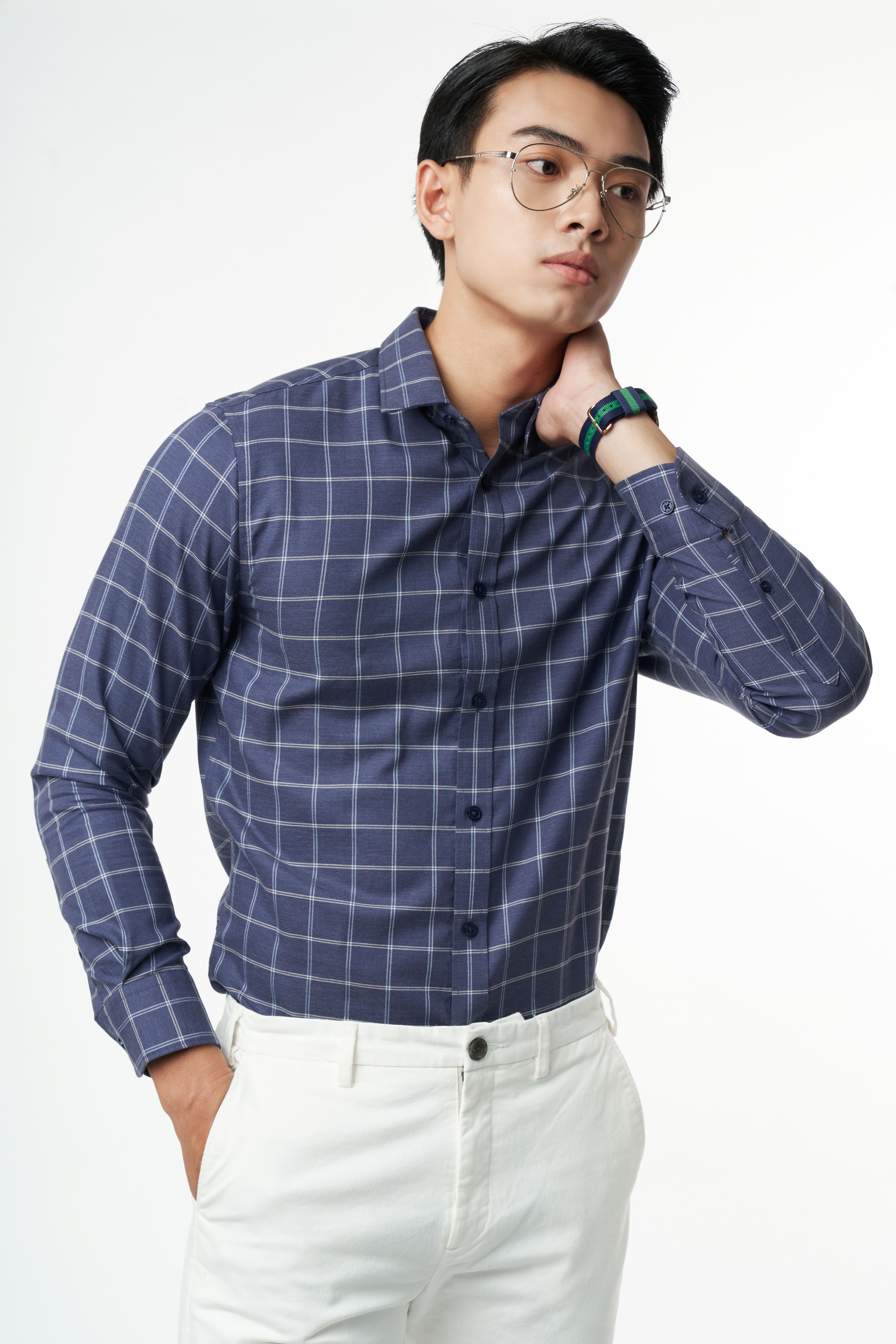 Áo sơ mi sọc caro melange nam 2205044 | Ninomaxx Concept #ninomaxxconcept #fashion #thoitrangnamnu