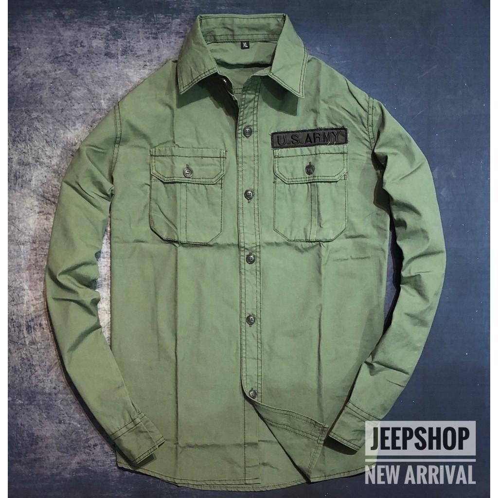 ✨Áo sơ mi dài tay US.Army_kaki_túi hộp