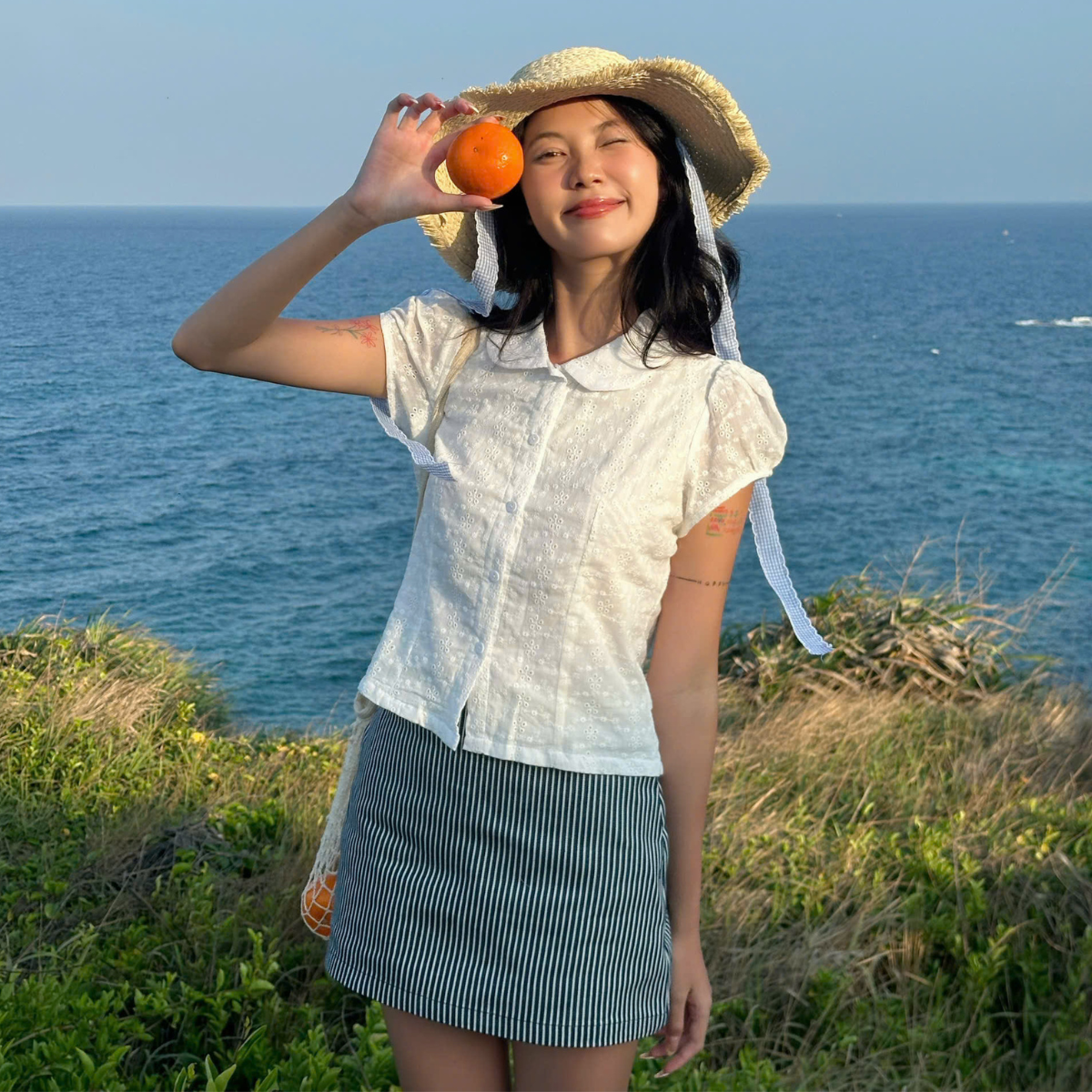 CHI TIẾT SẢN PHẨM ✿ Sản phẩm : Áo sơ mi tay ngắn viền ren dễ thương nữ tính cột nơ sau dễ phối đồ Jenni Miều Est.2013 ✿ Chất liệu : Xô Ren ✿